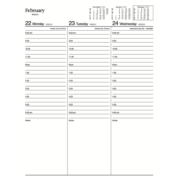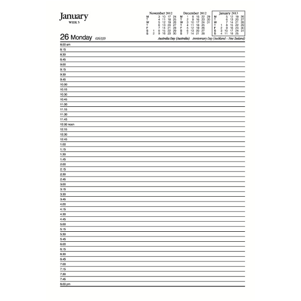 NEW LOOK! This popular series of diaries is available in both desk and pocket sizes. The Vanessa series is ideal for those 'on the move' with its double wiro binding and heavily grained metallic and matt PU cover. Printed on a subtle cream paper, each dated page layout features a six-month to view calendar, week numbers and Julian days, as well as both national and international public holidays. This series comes with the added feature of four-colour capital city maps and internal storage pocket in the desk diaries.